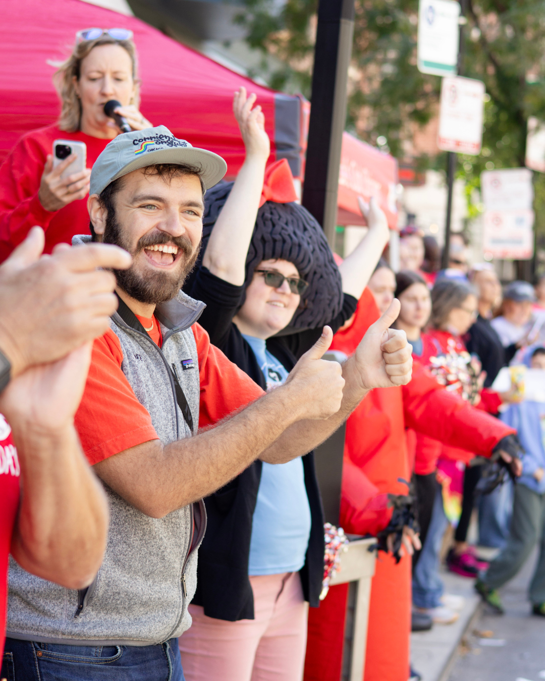 On race day, Team Gilda runners weren’t alone. Volunteers, members, and staff filled the course with red shirts, cowbells, drums, and endless enthusiasm. Our Cheer Team, stationed along the route, was impossible to miss their dancing, shouting encouragement, and lifting spirits mile after mile.