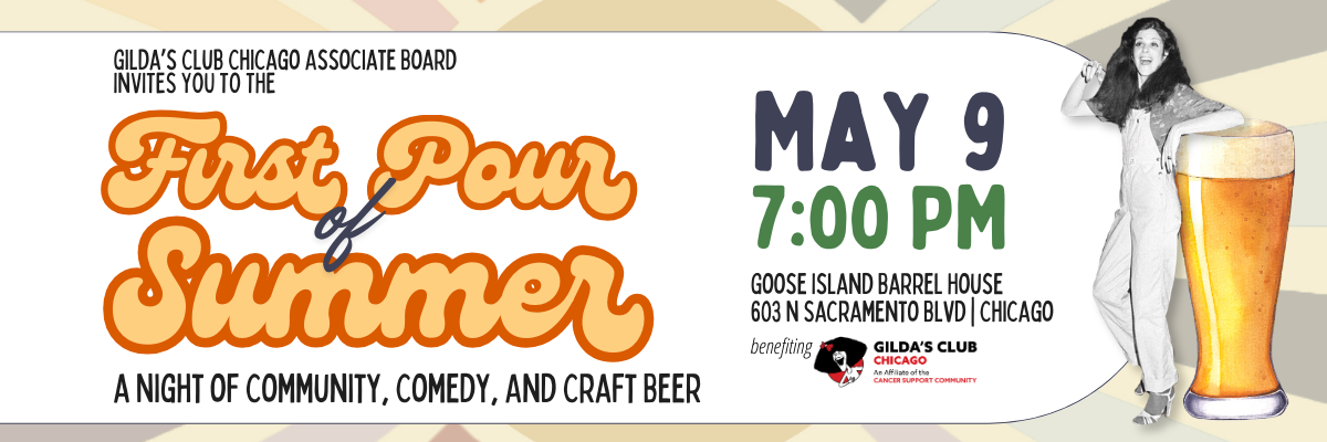 Join the Associate Board of Gilda’s Club Chicago on May 9 at 7 PM for First Pour of Summer, an evening of craft beer, comedy, and great company. This year’s event will once again be held at Goose Island Barrel House (603 N Sacramento Blvd), the perfect setting for a lively night that captures the energy of summer in Chicago. Whether you're catching up with friends, meeting new people, or simply enjoying a great night out, First Pour of Summer is all about what Chicago does best: coming together.
